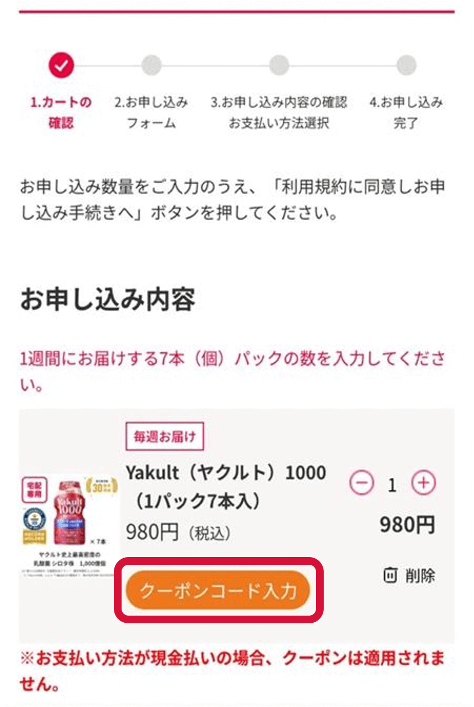 ※クーポンをお持ちの方は、カート画面で「クーポンコード入力」をクリックし、お持ちのクーポンコードをご入力ください。