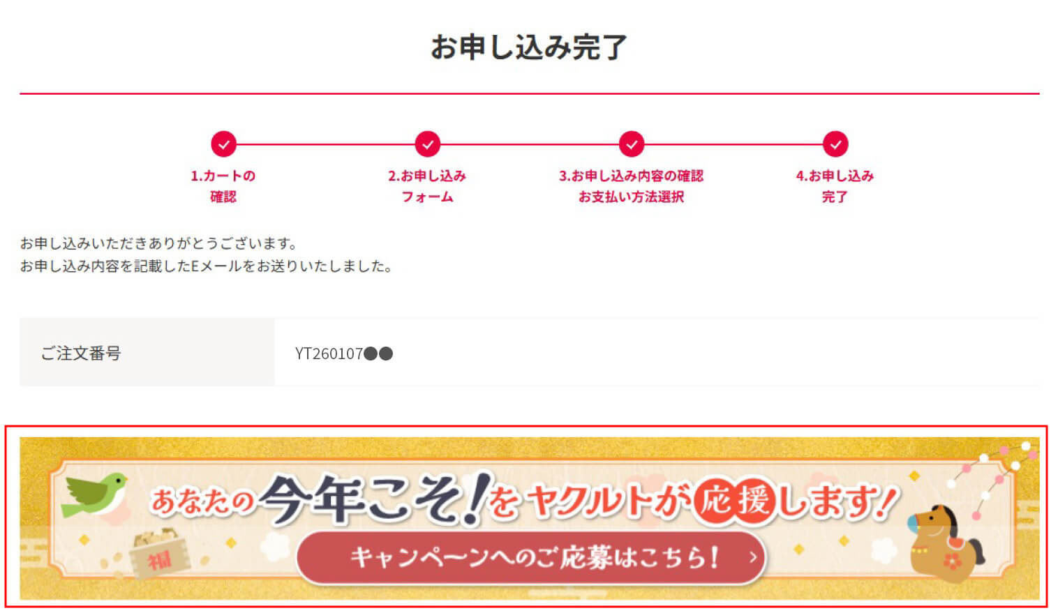 Step6.商品のお申し込みが完了すると、キャンペーン応募フォームへのリンクが表示されます。フォームから必要事項を入力のうえ、ご応募ください。